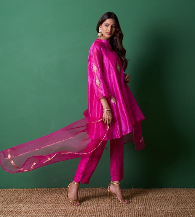 Pink Euphoria Paradise Embroidery Regular Fit Kurta with Pants and Dupatta
