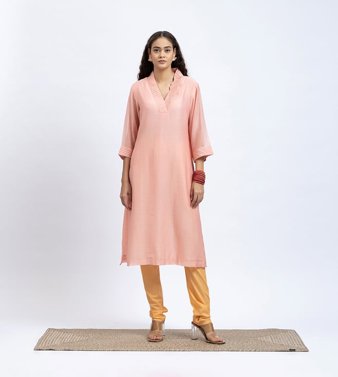Pink Dual Shaded Mukeish Muslin Kurta With Pant And Dupatta