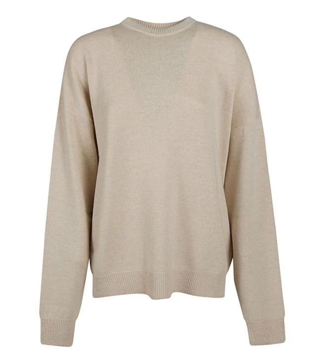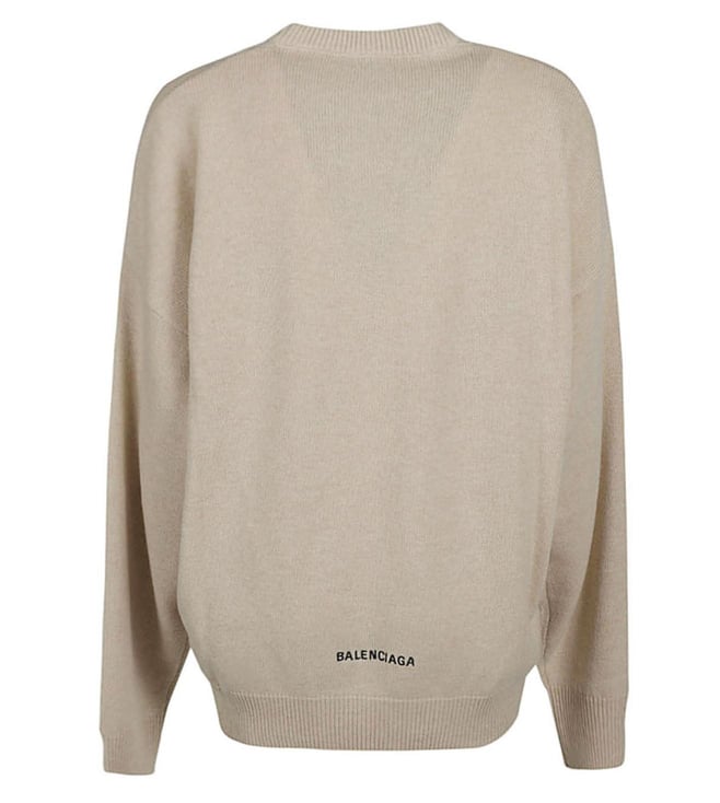 The Balenciaga Beige Crewneck Sweater is a luxurious blend of style and comfort, crafted from 100% wool for a soft, warm embrace. Its elegant beige hue is complemented by a subtle, intricate pattern that adds a touch of sophistication. The sweater features exquisite polyester detailing, enhancing its chic appeal. Designed for women who appreciate timeless fashion, it offers a classic crewneck silhouette with a seamless closure, making it a versatile addition to any wardrobe.