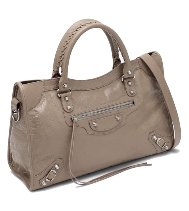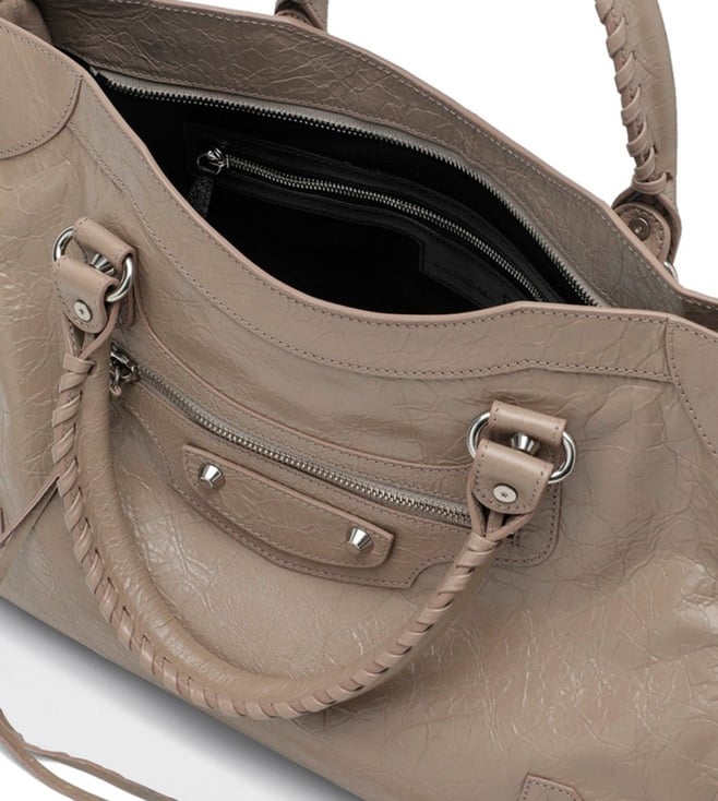Expand the collection of your accessories in a trendy way with this bag from Balenciaga. Le city medium handbag, adjustable and removable shoulder strap, two hand-braided leather handles, brass hardware.