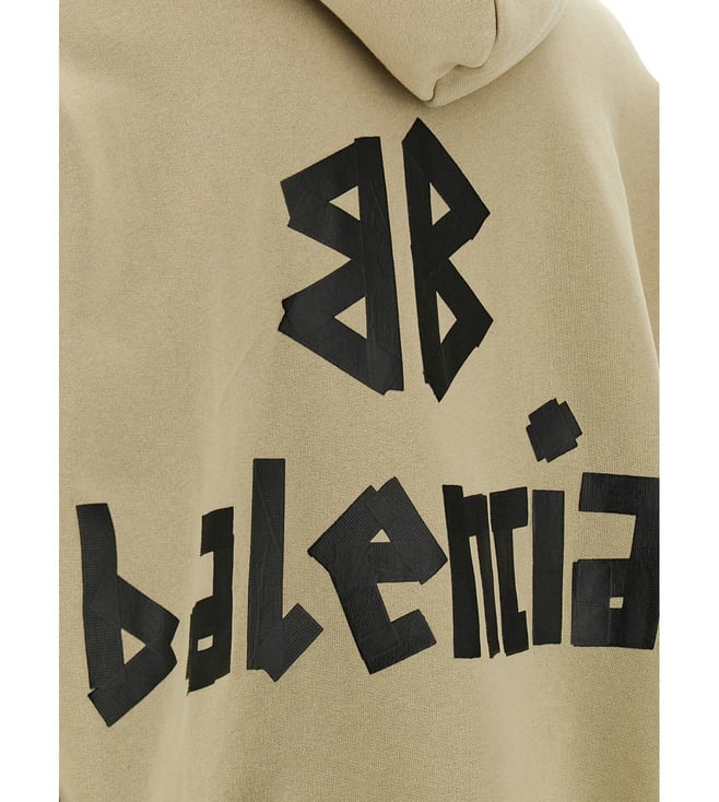Balenciaga Beige Logo Print Hoodie