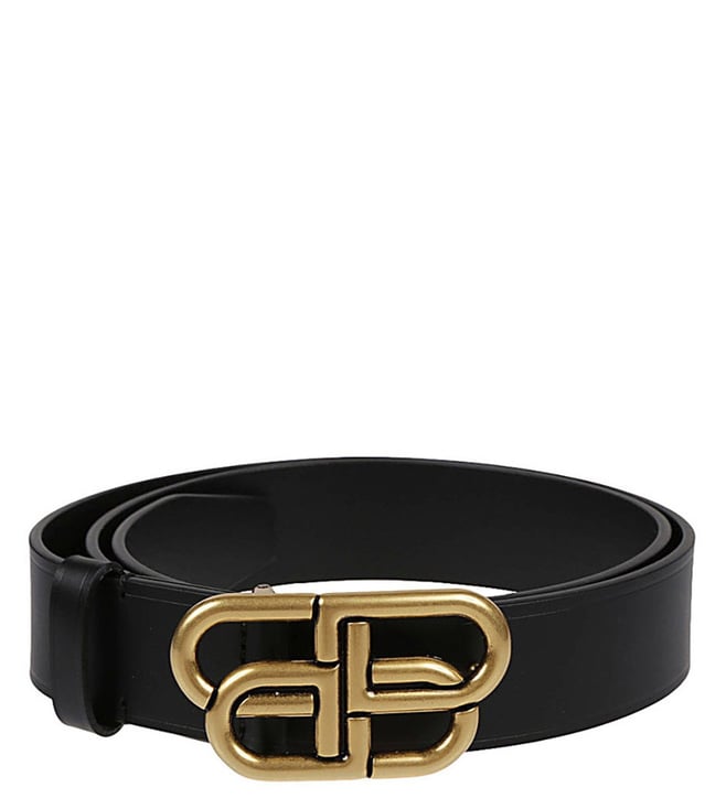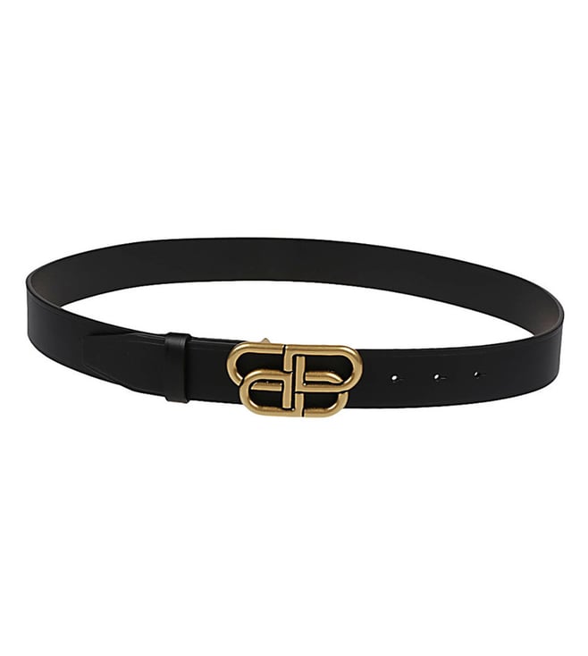 Elevate your casual look with the Balenciaga casual black Belt. Featuring aged gold toned interlocked bb logo hardware on the front, this belt exudes luxury and sophistication. With 5 notches for a perfect fit and a tone-on-tone leather loop, this accessory is both stylish and practical. Perfect for men who appreciate quality craftsmanship and timeless design, this belt is a must-have addition to any wardrobe. Make a statement with Balenciaga.
