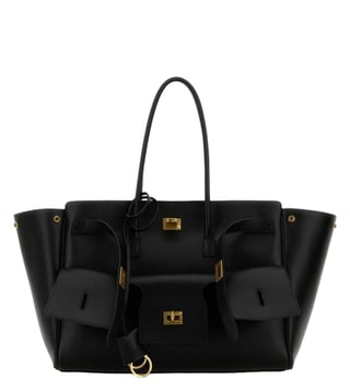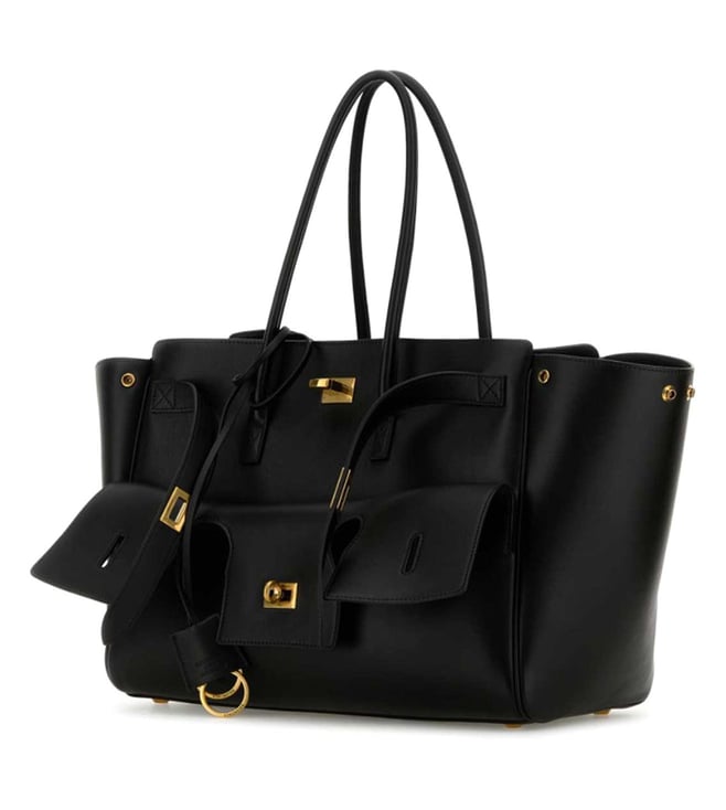Expand the collection of your accessories in a trendy way with this bag from Balenciaga. Black leathersmoothing finishgold-tone logo letteringbuckle-strap fasteningpress-stud fasteningfront flap pocketstwo rolled top handlesgold-tone hardware