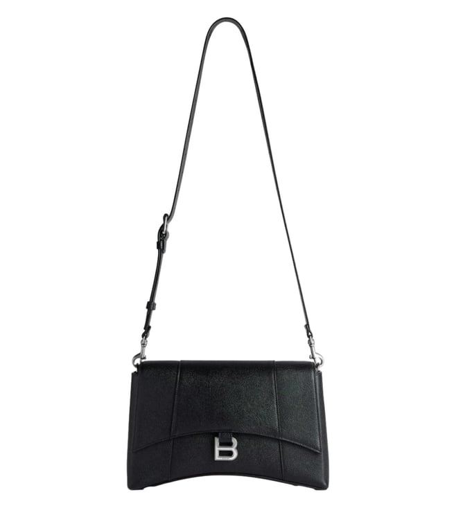Expand the collection of your accessories in a trendy way with this bag from Balenciaga. Downtown crossbody bag from balenciaga featuring black, leather, signature b logo plaque, adjustable detachable shoulder strap, foldover top and main compartment. Products purchased from Darveys are supported exclusively by the warranty/exchange policies of Darveys and its partner boutiques. Brand owners and their channel partners are not responsible for exchange/warranty services for items purchased through Darveys.