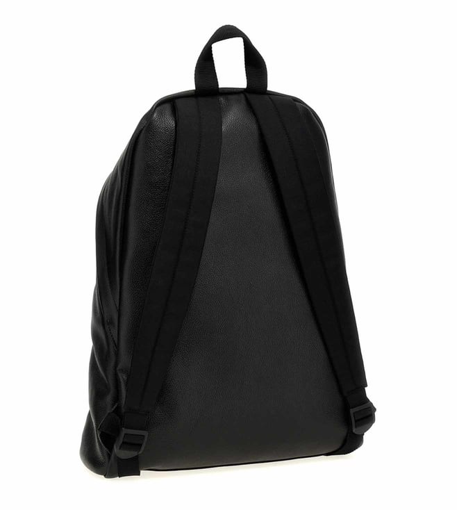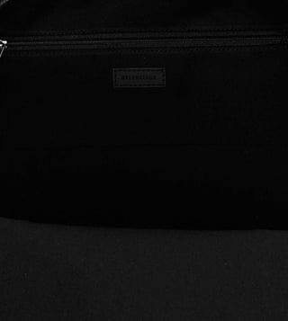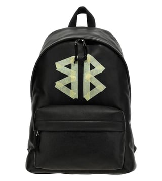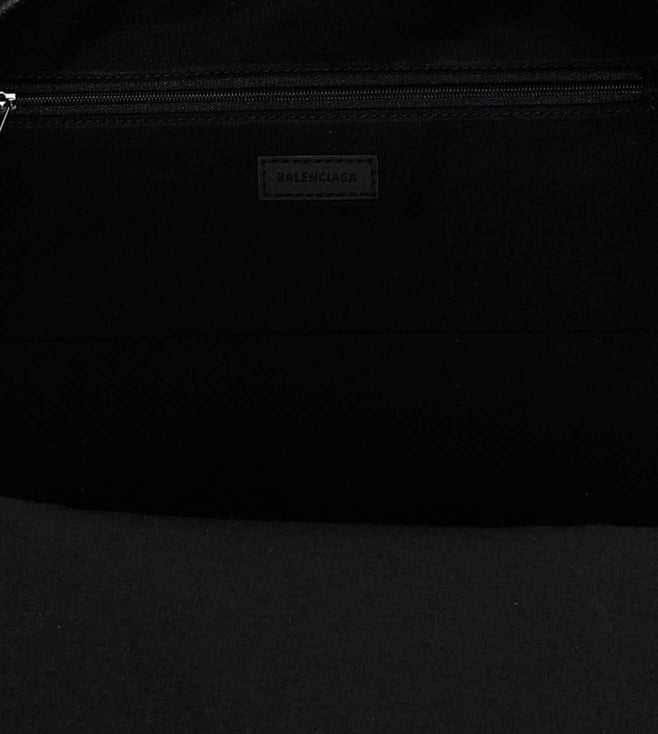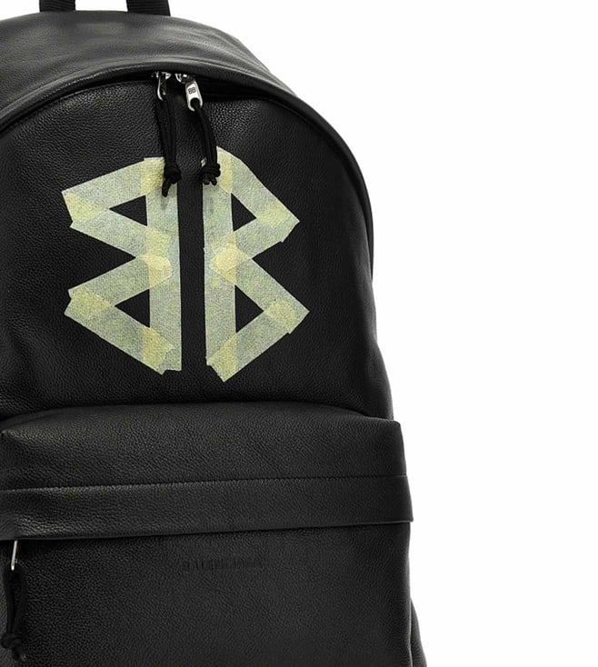 Expand the collection of your accessories in a trendy way with this bag from Balenciaga. Explorer water-repellent black hammered leather backpack with front tape type logo print, zip closure, handle, front pocket with zip closure, adjustable shoulder straps.