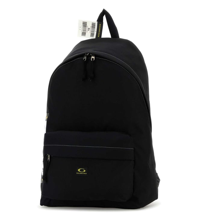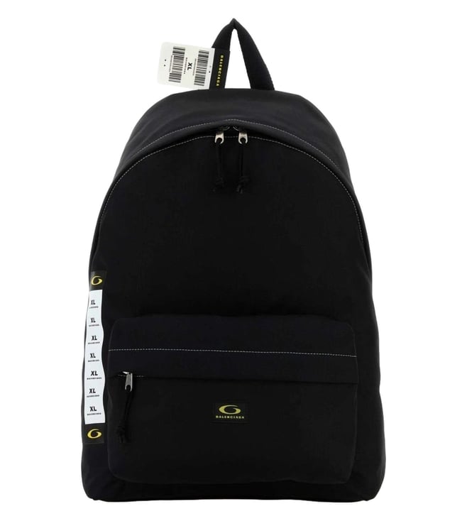 Black workwear tag on polyamide and polyester backpack one top handle adjustable shoulder straps balenciaga logo at front matte black hardware top double-ended zip-fastening closure front zipped pocket 1 inner zipped pocket 1 inner patch pocket bb logo engraved zipper puller with cotton string cotton canvas lining