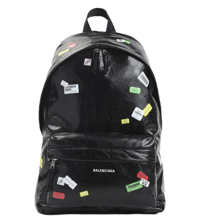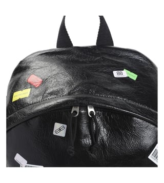 Balenciaga backpack is crafted from Arena lambskin with printed sticker details. a top handle, adjustable shoulder straps, and matte black hardware. front debossed and printed logo, a double-ended zip closure, and a front zipped pocket. Inside, one zipped pocket, one patch pocket, and a cotton canvas lining. The BB logo-engraved zipper pullers with cotton string. With its timeless design and practical features, this bag is a must-have accessory for the modern woman on-the-go.