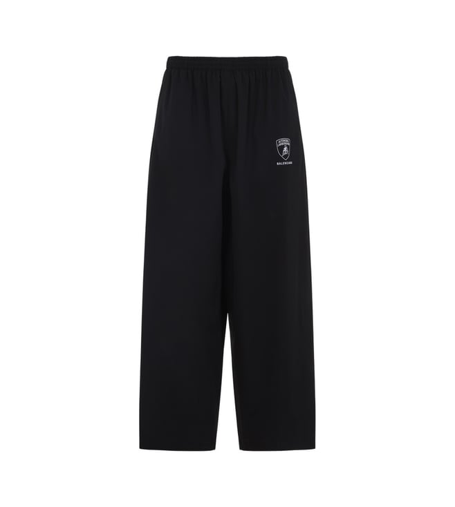 Elevate your style with the Balenciaga Black Loose Fit trackpants. Elastic waistband side pockets contrasting white embroidered logo wide leg straight hem Crafted for durability and comfort. Products purchased from Darveys are supported exclusively by the warranty/exchange policies of Darveys and its partner boutiques. Brand owners and their channel partners are not responsible for exchange/warranty services for items purchased through Darveys.