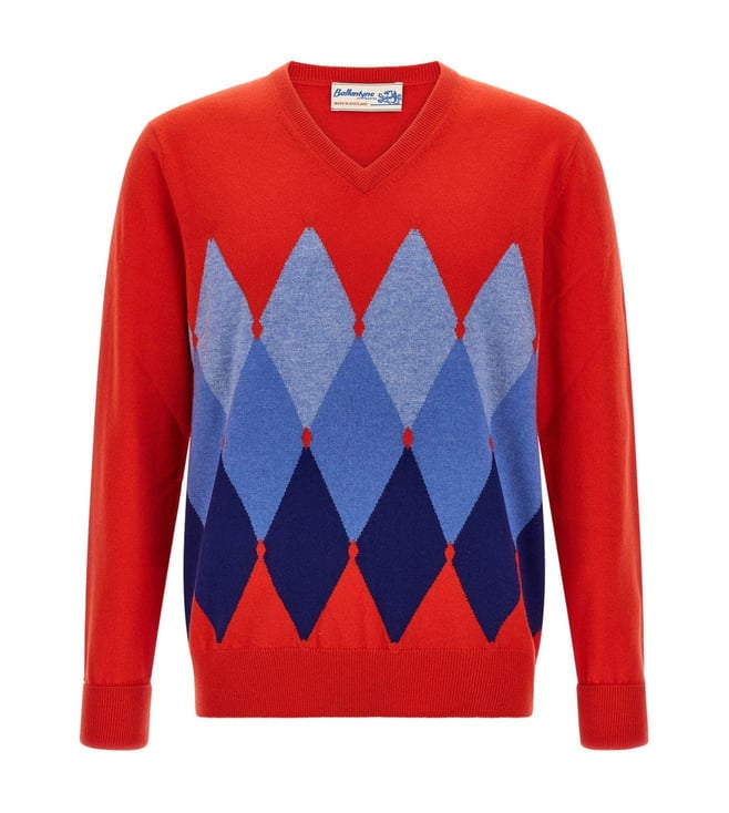 Ballantyne Red Argyle Pattern Sweater