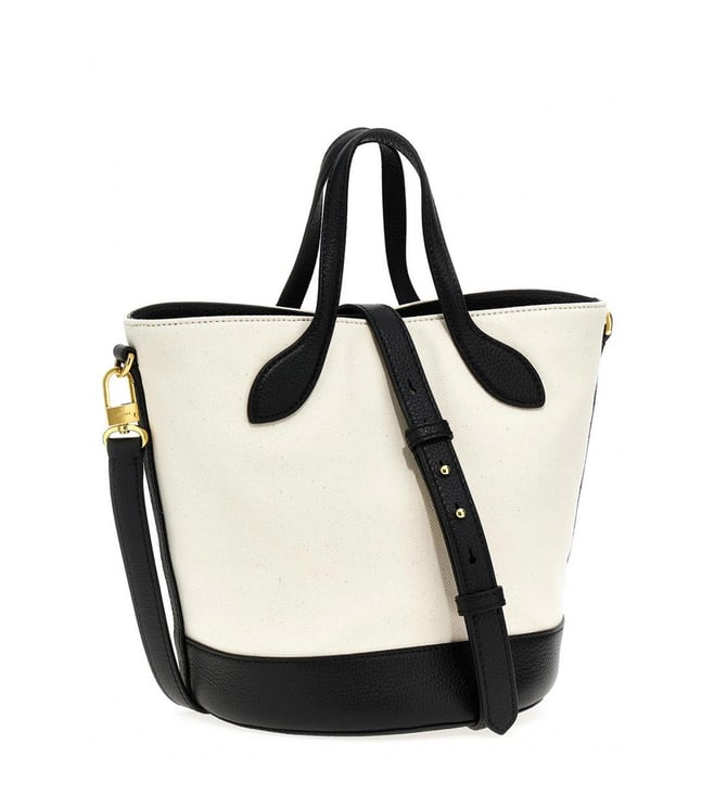 Blackwhite bar canvas handbag with leather details, front logo print, double leather handle and awith adjustable and removable shoulder strap. W h d Products purchased from Darveys are supported exclusively by the warranty/exchange policies of Darveys and its partner boutiques. Brand owners and their channel partners are not responsible for exchange/warranty services for items purchased through Darveys.