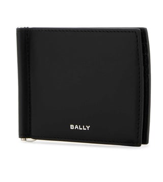 Wallet featuring snap closure, money clip card slots and brand detailing.