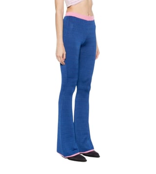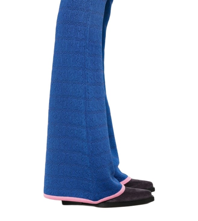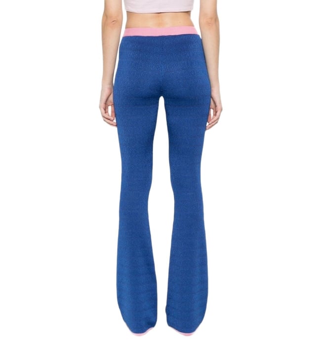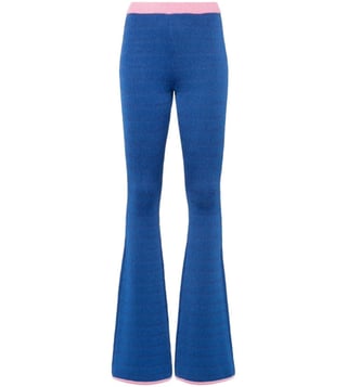 Elevate your wardrobe with the Bally Blue Flared Trousers. Designed with blue, knitted construction, stretch-design, patterned jacquard, contrasting trim, elasticated waistband, flared, pull-on style, silk 100%, viscose 93%, nylon 6%, elastane 1%, this piece fits true to size. we recommend you get your regular size, model is 1, 75m / 5ft 8in wearing size s, these trousers combine comfort and sophistication for everyday wear.