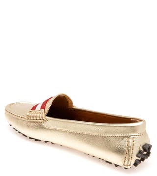 This pair of loafers boast a laid back sensibility perfect for a woman's off-duty look. The raised metal logo on the side underscored by the iconic Trainspotting Stripe across the front add to its design. This pair vaunts a leather upper with individual rubber grips to the sole for support with each step.