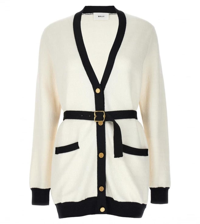 Black & White Jacquard Logo Woven Design Cardigan