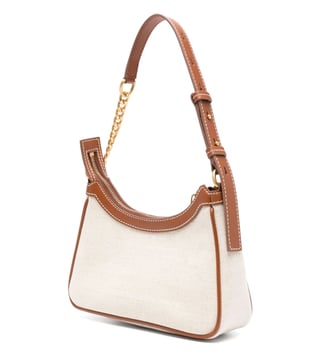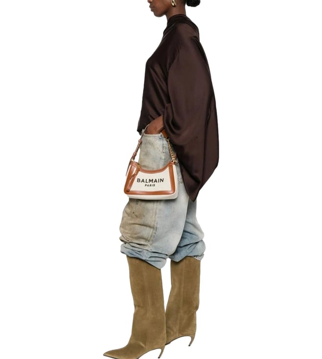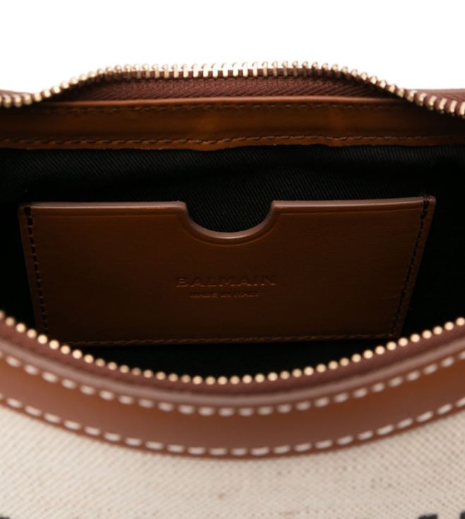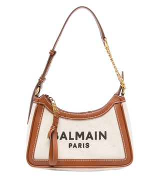 Beige carry in the hand or wear on the shoulderadjustable leather and chain handle with stud buttonsembroidered balmain paris logo on the fronttopstitched smooth leather detailsvisible zip fastening, leather pb sliderembossed leather inside card pockettwill lininggold hardware58 percent cotton 42 percent linen Products purchased from Darveys are supported exclusively by the warranty/exchange policies of Darveys and its partner boutiques. Brand owners and their channel partners are not responsible for exchange/warranty services for items purchased through Darveys.