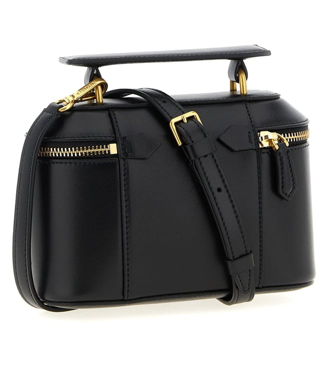 Black b-buzz leather handbag, front pocket with magnetic flap closure and antiqued metal logo on the front, fixed handle, top zip closure, metal details, adjustable and removable shoulder strap. Products purchased from Darveys are supported exclusively by the warranty/exchange policies of Darveys and its partner boutiques. Brand owners and their channel partners are not responsible for exchange/warranty services for items purchased through Darveys.