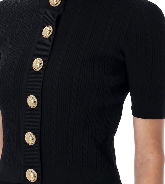 Embrace timeless elegance with this black cardigan, featuring a solid pattern and chic short sleeves. The round neck design offers a classic touch, while the luxurious blend of 83% viscose and 17% polyester ensures a soft, comfortable fit. Perfect for any occasion, this piece exudes effortless sophistication. Products purchased from Darveys are supported exclusively by the warranty/exchange policies of Darveys and its partner boutiques. Brand owners and their channel partners are not responsible for exchange/warranty services for items purchased through Darveys.