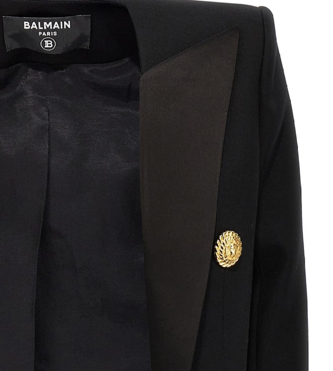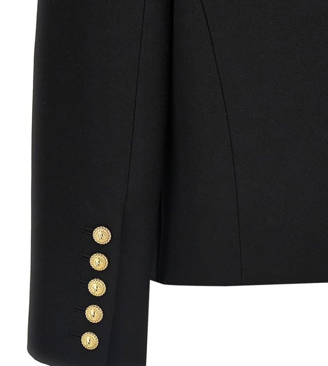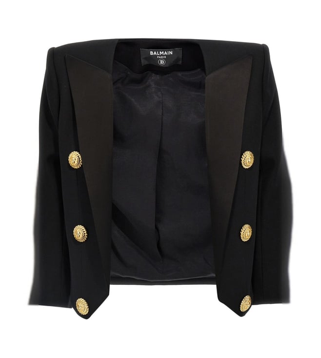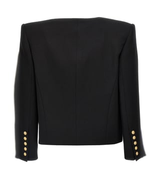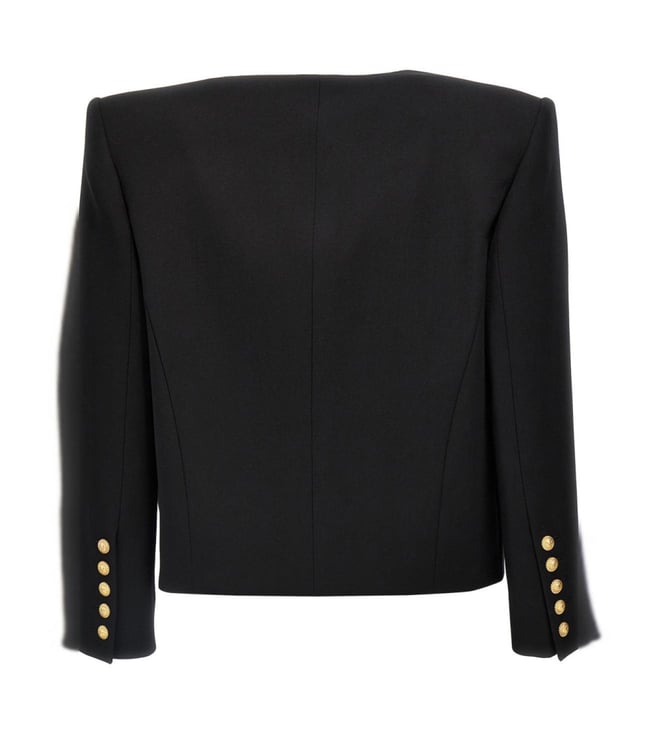 Balmain Black Cropped Grain De Poudre Edge-To-Edge Slim Fit Jacket