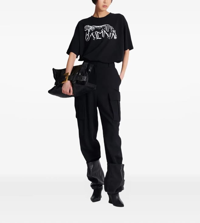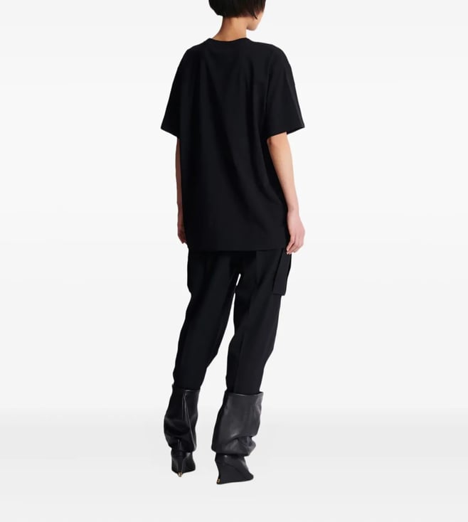 Embrace effortless style with this black relaxed-fit T-shirt, designed for the modern woman. Featuring a bold graphic pattern, it offers a chic twist on a classic staple. Crafted from 100% cotton, it ensures all-day comfort. The short sleeves and round neck add a touch of casual elegance to any outfit. Products purchased from Darveys are supported exclusively by the warranty/exchange policies of Darveys and its partner boutiques. Brand owners and their channel partners are not responsible for exchange/warranty services for items purchased through Darveys.