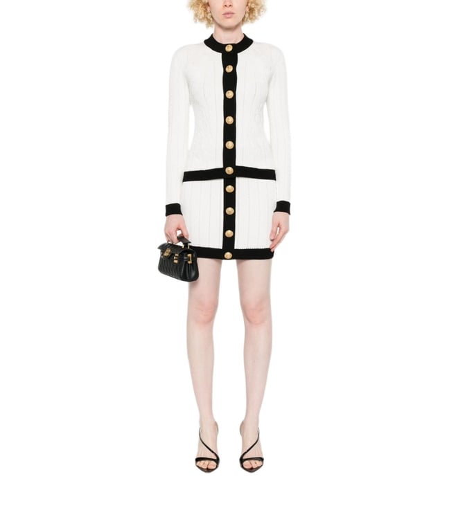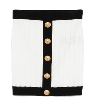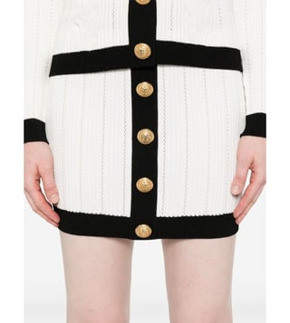 Elevate your wardrobe with the Balmain Black skirt. Designed with velvet wrap mini skirt, front detail with buttons embellished with contrasting crystals. these trousers combine comfort and sophistication for everyday wear. Products purchased from Darveys are supported exclusively by the warranty/exchange policies of Darveys and its partner boutiques. Brand owners and their channel partners are not responsible for exchange/warranty services for items purchased through Darveys.