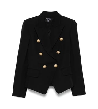 Balmain Black Tailored Fit Double-Breasted Wool Blazer