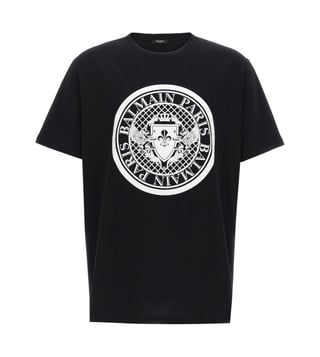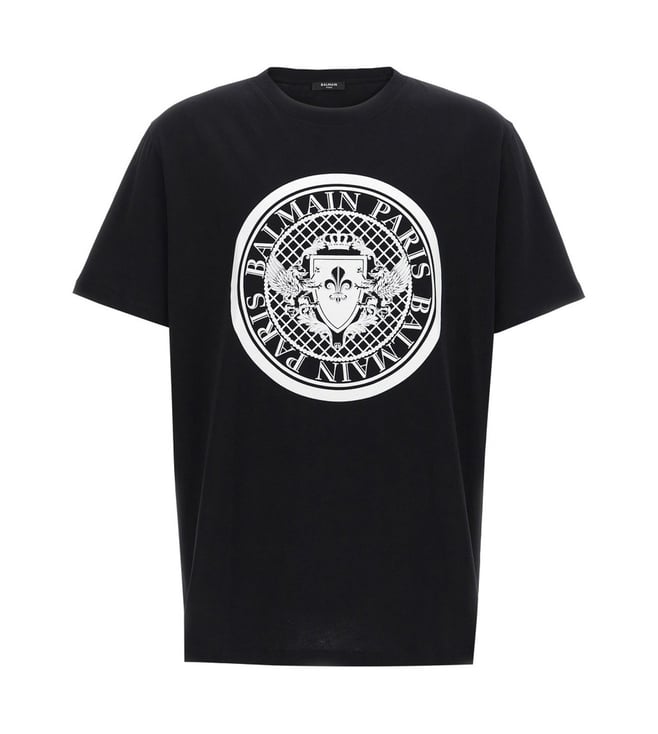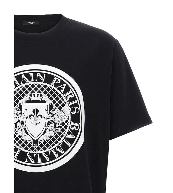 Elevate your style with the Balmain Black Graphic t-shirt. Cotton t-shirt, embossed velvet logo on the front, crew neck, short sleeves.x000D True to size fit. Products purchased from Darveys are supported exclusively by the warranty/exchange policies of Darveys and its partner boutiques. Brand owners and their channel partners are not responsible for exchange/warranty services for items purchased through Darveys.