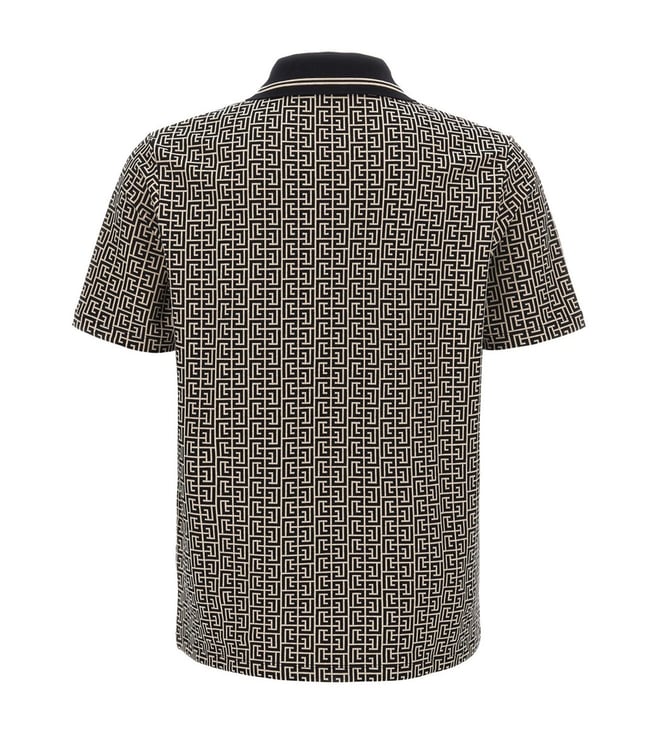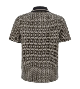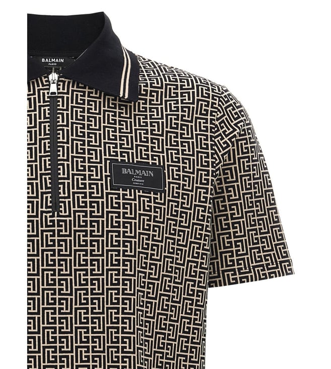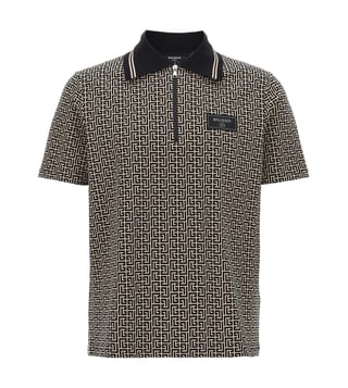 Elevate your style with the Balmain Black & White Geometric polo t-shirt. Jacquard cotton polo shirt with allover labyrinth pb monogram pattern, contrasting collar and half zip, front logo patch, and short sleeves.x000D True to size fit. Products purchased from Darveys are supported exclusively by the warranty/exchange policies of Darveys and its partner boutiques. Brand owners and their channel partners are not responsible for exchange/warranty services for items purchased through Darveys.