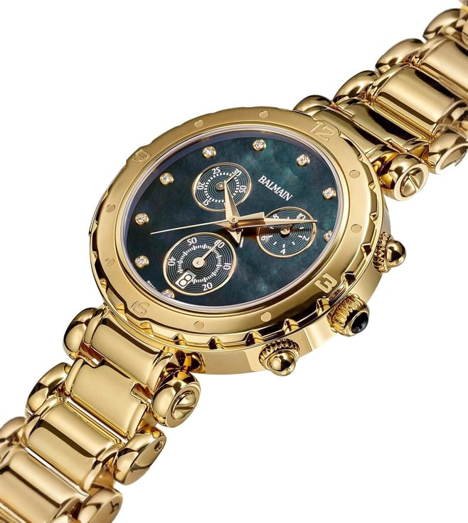 Introducing the Balmain B5630.33.65 Downtown Balmainia Chrono Lady Swiss Made Analog Watch for Women. This exquisite chronograph features 12 Top Wesselton diamonds, each 1.10-1.15 mm, with a total weight of 0.070 ct. The diamonds, showcasing VS-SI clarity and single cut precision, add a luxurious sparkle to the watch¿s sophisticated design. Swiss craftsmanship ensures both elegance and precision, making it the perfect choice for the discerning modern woman.