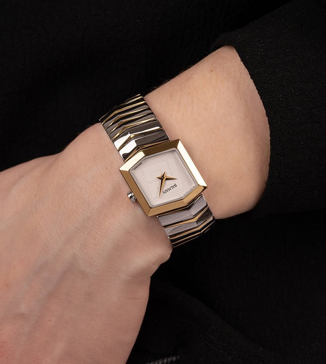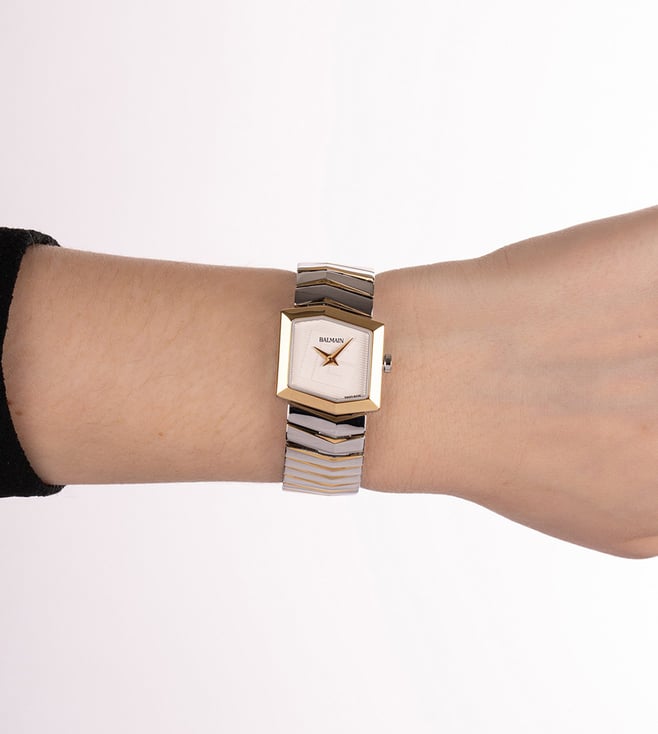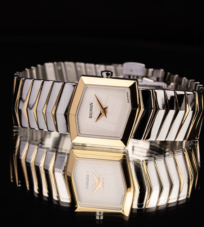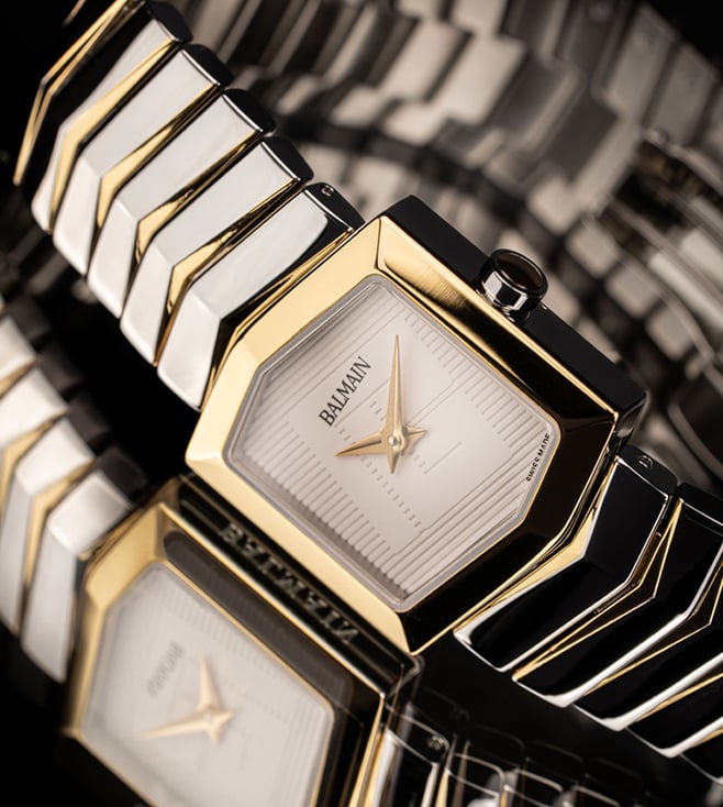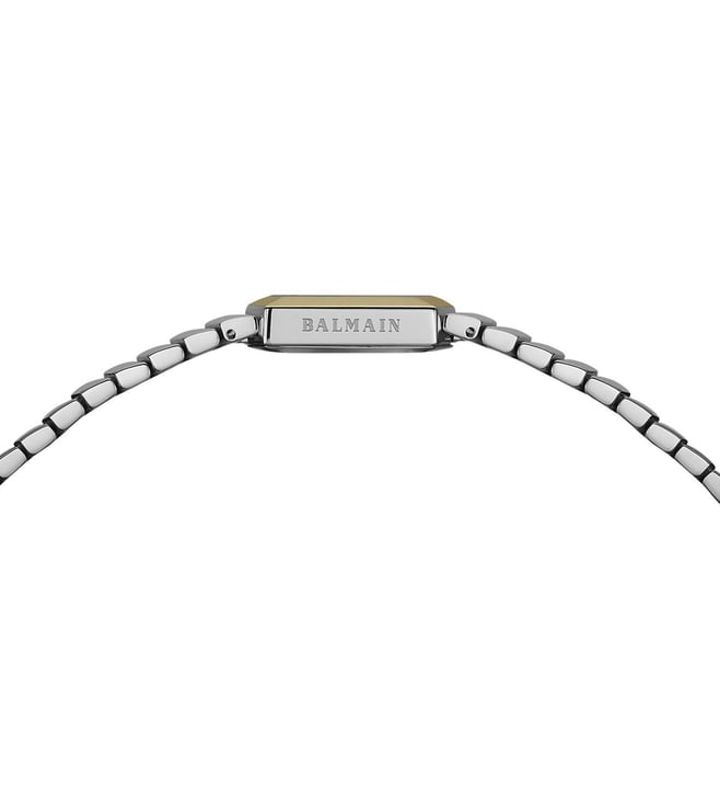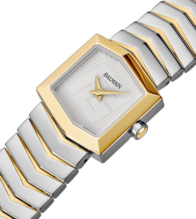 The Balmain Taffetas Quartz Womens Watch B46523928 22.5 mm radiates contemporary elegance with its two-tone stainless steel bracelet and silver rectangular dial. Its slim, refined design reflects Balmain¿s Parisian sophistication, while the precise Swiss quartz movement ensures reliable performance. A perfect balance of luxury and everyday wear, this watch adds a touch of timeless charm to any ensemble.