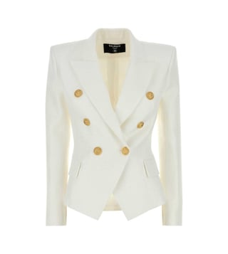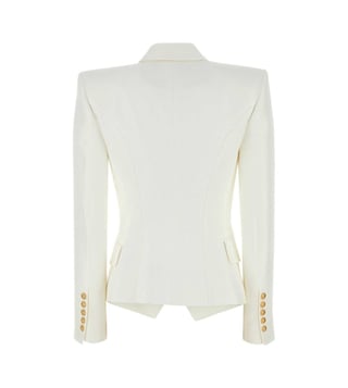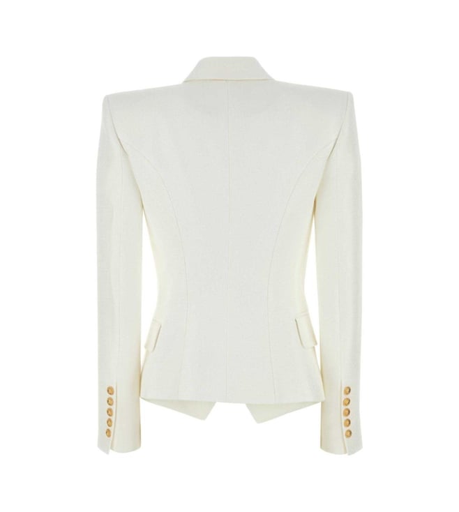 Elevate your style with this exquisite white blazer, a masterpiece of modern elegance. Crafted in a solid pattern, it features long sleeves and a sophisticated lapel collar, exuding timeless charm. The exterior, a luxurious blend of 98% viscose and 2% nylon, offers a silky touch, while the lining, composed of 52% viscose and 48% cotton, ensures comfort. Designed for the discerning woman, this blazer is the epitome of chic, perfect for any occasion where style meets substance.