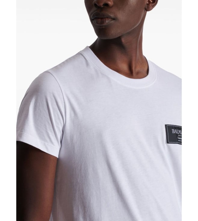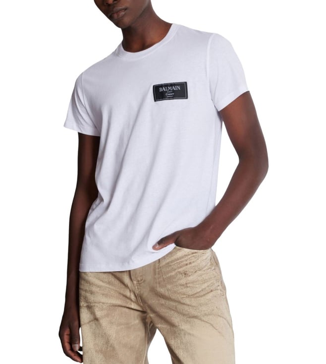 Elevate your style with the Balmain White t-shirt. White cotton logo patch at the chest crew neck short sleeves. Products purchased from Darveys are supported exclusively by the warranty/exchange policies of Darveys and its partner boutiques. Brand owners and their channel partners are not responsible for exchange/warranty services for items purchased through Darveys.