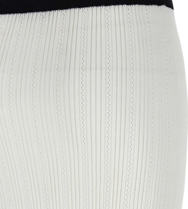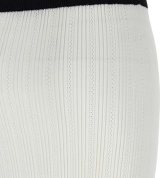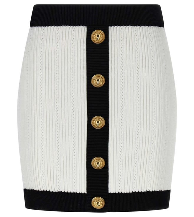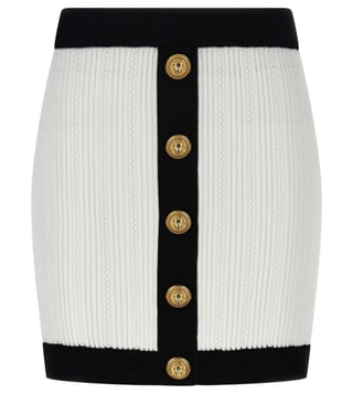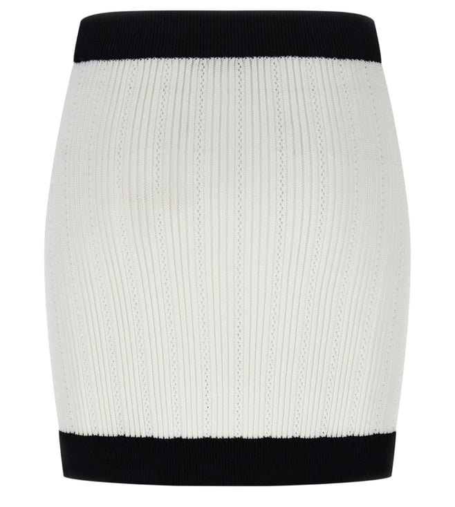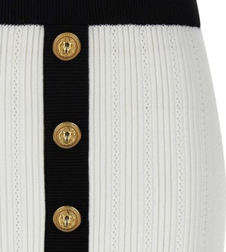 The Balmain White Two-Tone Miniskirt is a stunning fusion of elegance and modernity, crafted for the discerning woman. This exquisite piece features a captivating color palette that seamlessly blends crisp white with subtle contrasting tones, creating a visually striking effect. The intricate pattern adds a touch of sophistication, while the luxurious fabric ensures a flattering fit and unparalleled comfort. Perfect for any occasion, this miniskirt embodies the essence of chic, contemporary style.