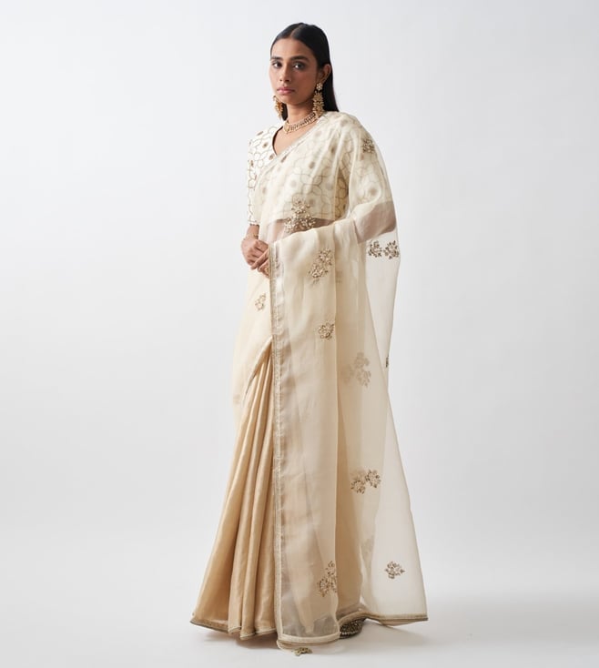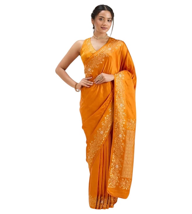 Gold Banarasi Raag Avanti Saree with Blouse and Petticoat