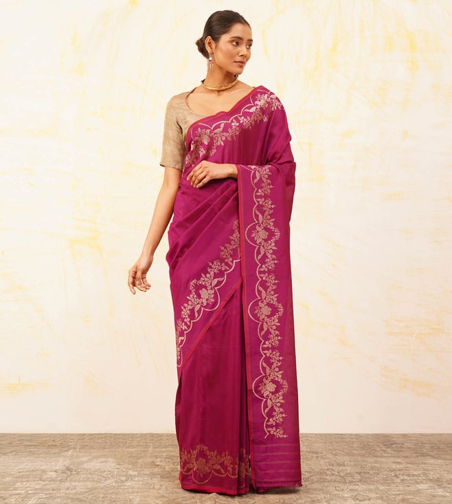 Purple, Silver & Gold Janaki Hand Embroidered Banarasi Silk Tissue Lehenga with Blouse