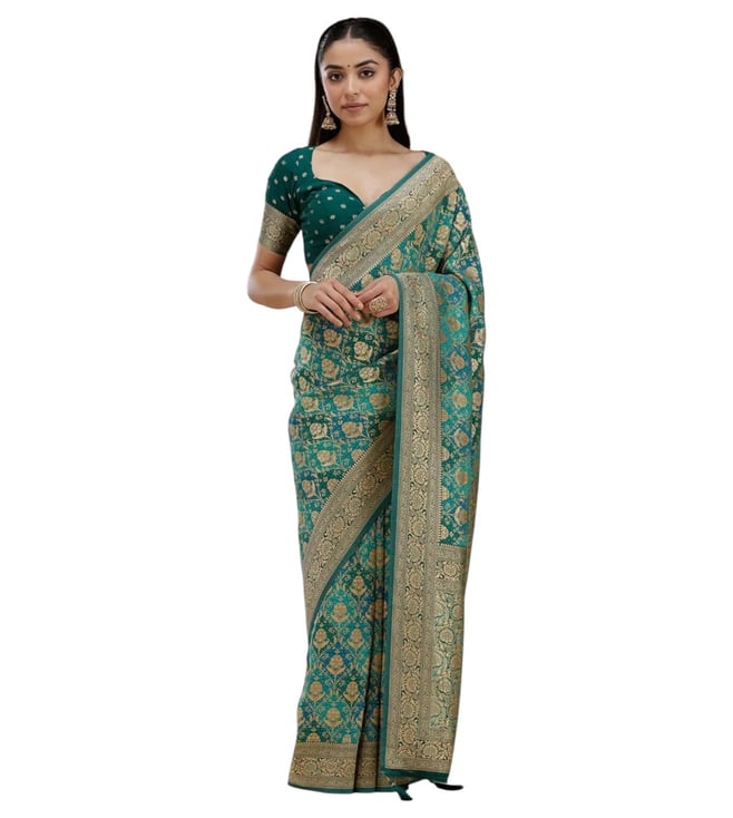 Sage Green Johari Bazaar Classic Tissue Silk Saree With Blouse