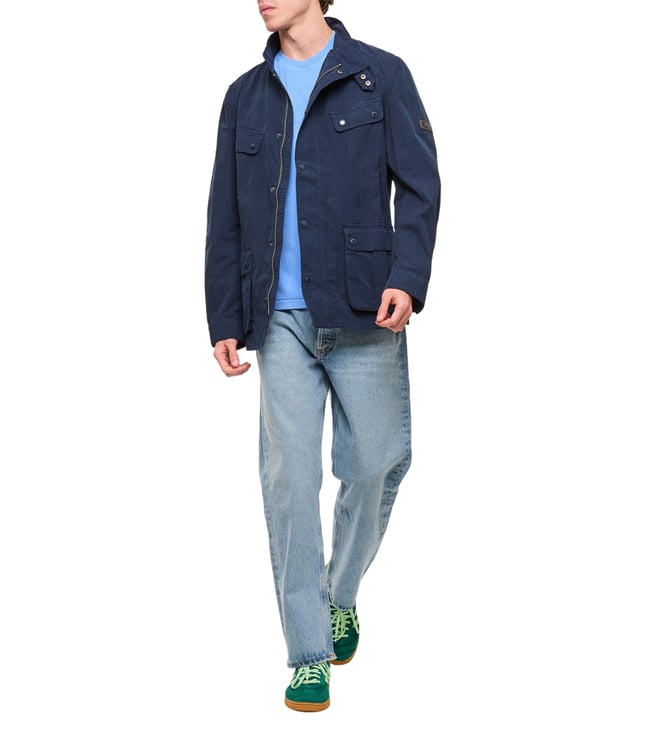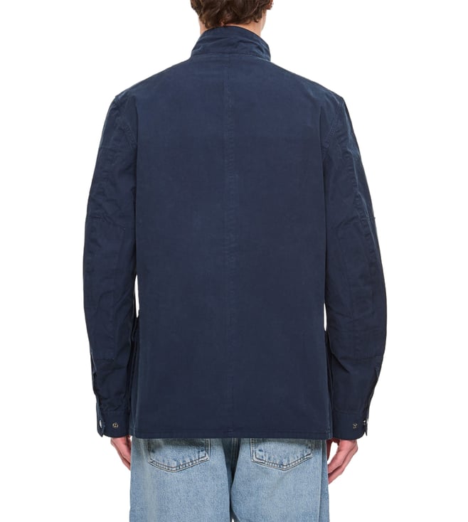 Elevate your style with the Barbour Navy Jacket. Front press-stud and zip fastening two chest flap pockets two front flap pockets logo patch at the sleeve. Products purchased from Darveys are supported exclusively by the warranty/exchange policies of Darveys and its partner boutiques. Brand owners and their channel partners are not responsible for exchange/warranty services for items purchased through Darveys.