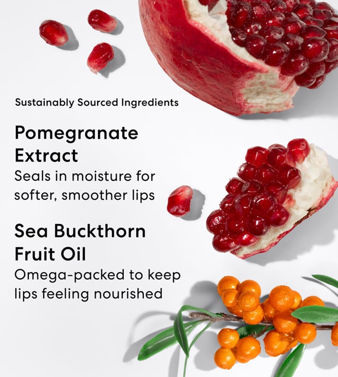 Pomegranate ExtractSeals In Moisture For Softer, Smoother LipsSea Buckthorn Fruit OilOmega-Packed To Keep Lips Feeling Nourished And MoisturizedMineral PigmentsProvide Rich, True ColorIsododecane, Caprylic/Capric Triglyceride, Trimethylsiloxysilicate, Silica, Hydrogenated Polyisobutene, Bis-Diglyceryl Polyacyladipate-2, Isobutylmethacrylate/Bis-Hydroxypropyl Dimethicone Acrylate Copolymer, Disteardimonium Hectorite, Tribehenin, Euphorbia Cerifera (Candelilla) Wax(Candelilla Cera/Cire De Candelilla), Simmondsia Chinensis (Jojoba) Seed Oil, Propylene Carbonate, Tocopheryl Acetate, Punica Granatum Flower Extract, Polyglyceryl-3 Diisostearate, Flavor (Aroma), Ethylhexylglycerin, Hippophae Rhamnoides Oil, Linalool. May Contain/Peut Contenir (+/-): Blue 1 Lake (Ci 42090), Iron Oxides (Ci 77491, Ci 77492, Ci 77499), Red 28 Lake (Ci 45410), Red 30 Lake (Ci 73360), Red 7 Lake (Ci 15850), Yellow 5 Lake (Ci 19140), Red 6 (Ci 15850), Titanium Dioxide (Ci 77891).