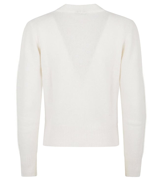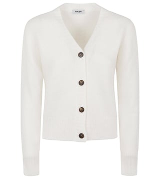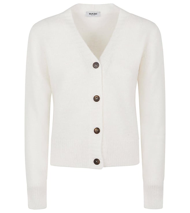 Embrace timeless elegance with our Base White Wool V-Necked Cardigan, a masterpiece of understated sophistication. Crafted from a luxurious blend of wool and polyamide, this cardigan offers a soft, cozy embrace. Its pristine white hue is complemented by a subtle pattern, adding a touch of texture to its classic design. The V-neckline enhances its versatile appeal, while the closure ensures a seamless fit. Perfect for layering, this cardigan is a must-have for the modern woman seeking both comfort and style.