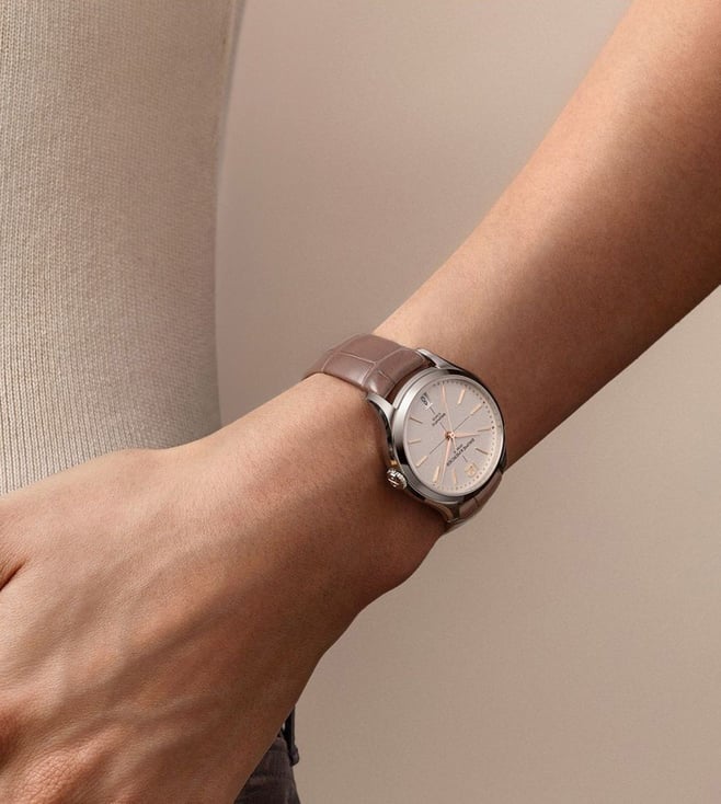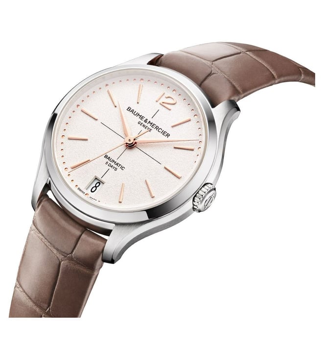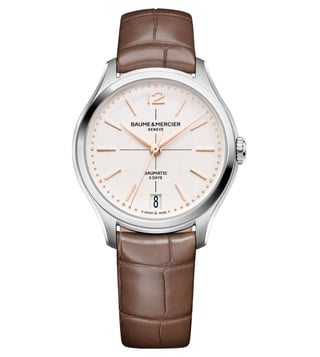 Introducing the Baume & Mercier Clifton Automatic Womens watch, a stunning 34mm timepiece that exudes elegance and sophistication. Featuring the renowned craftsmanship of Baume & Mercier, this watch boasts a sleek design with a luxurious stainless steel case and bracelet. The automatic movement ensures precision timekeeping, while the date function adds practicality. Perfect for the modern woman who values both style and functionality, the Baume & Mercier Clifton is a timeless accessory that will elevate any outfit with its timeless beauty.