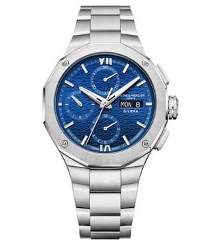 Introducing the Baume & Mercier Riviera Automatic Chronograph Mens Watch, a sophisticated timepiece that combines style and functionality seamlessly. With a sleek 41mm design and the precision of an automatic chronograph movement, this watch is perfect for the modern man who values both elegance and performance. The MOA10826 model boasts a stunning design with a stainless steel case and bracelet, a bold black dial with chronograph sub-dials, and a date window. Elevate your look with this luxurious watch that is sure to turn heads and make a statement wherever you go.