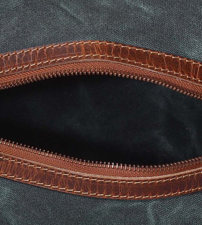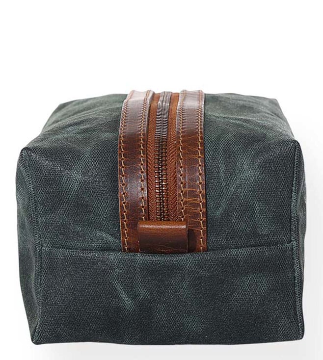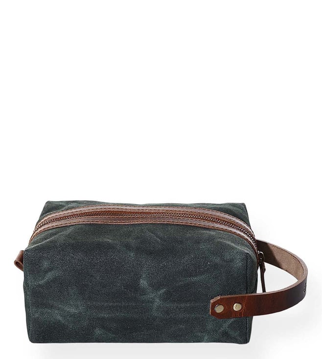 The dopp kit from Beast Craft features a simple and classic design. A zippered top keeps your toiletries secure, and the minimalist interior provides easy access for all your daily essentials. It is made of super thick and durable hand-waxed cotton canvas and 2 mm thick genuine full-grain waxed leather, the material makes it super sturdy and makes the whole kit water repellent. It flaunts a 4 mm thick genuine full-grain waxed leather handle and antique brass finish zippers. Country Of Origin - India. Disclaimer: Product colour may slightly vary due to photographic lighting sources.