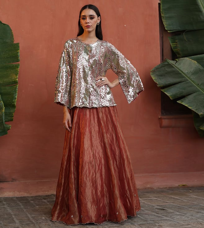 Bronze Georgette Comfort fit Embellished Lehenga Set