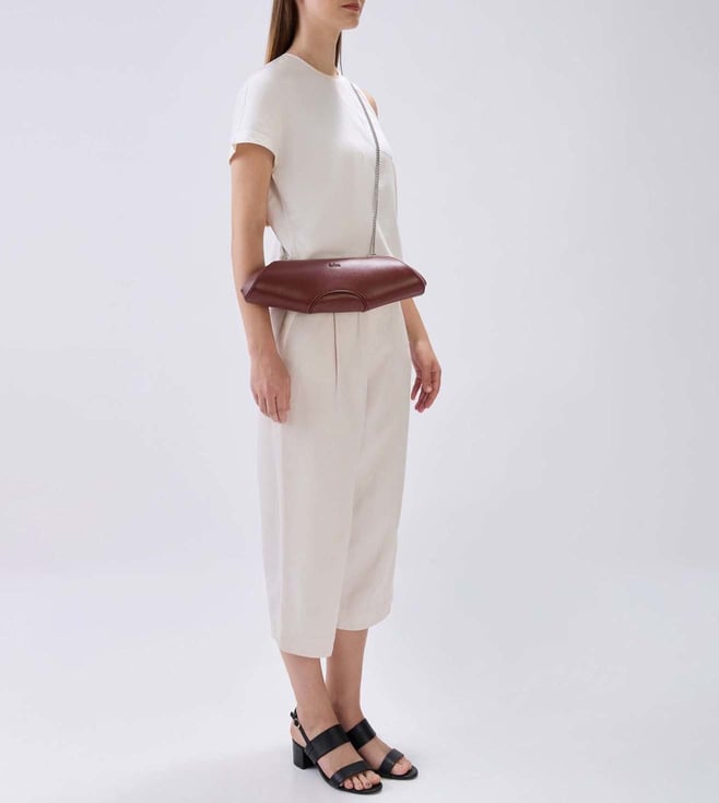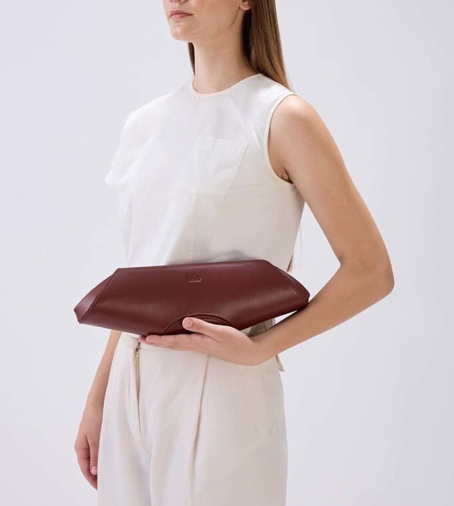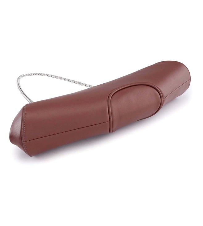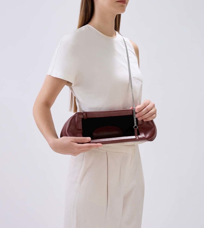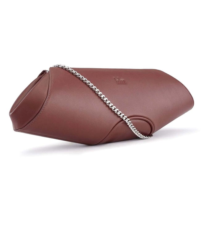 Handcrafted baguette clutch bag. Constructed from supple nappa leather with a magnetic closure. Comes with a chain shoulder strap. Proudly made in our india-based maison de behno, we are able to pass on the benefit of no duties and taxes, making this handbag rupees 18,000 for you.