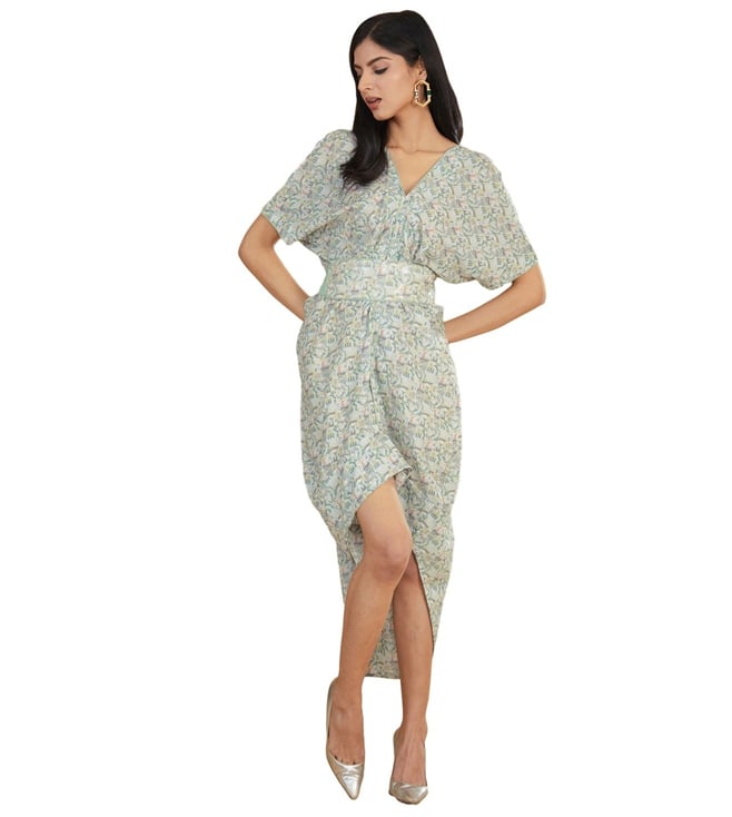 Rose Pink Pernia Botanic Print Long Dress with Attached Belt