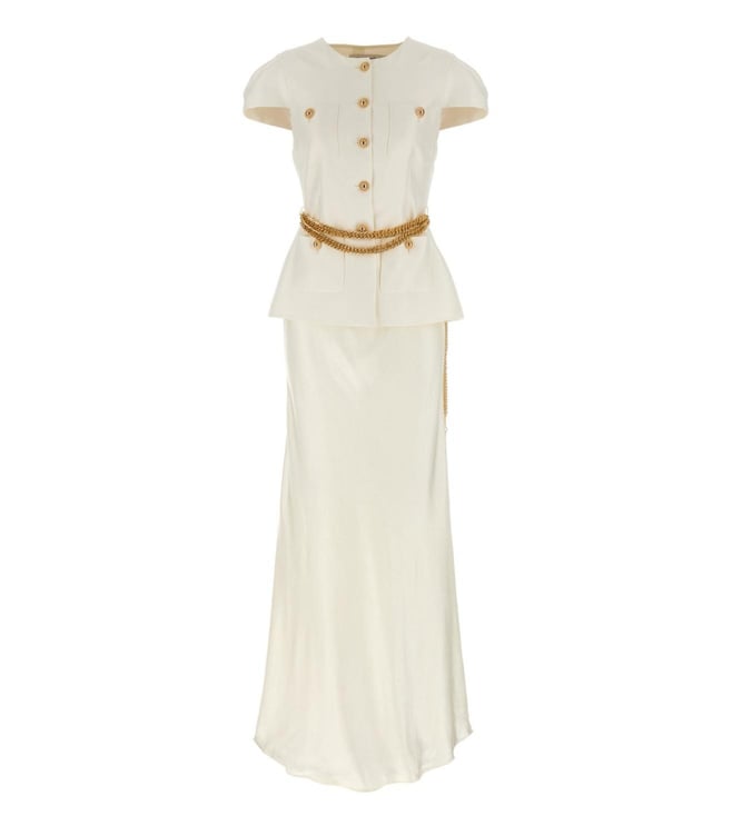 White Taffeta Chain Belt Maxi Embellished Slim Fit Dress