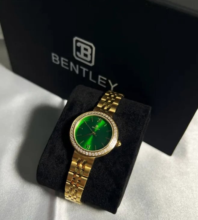 Gracefully crafted for the discerning woman, this Bentley timepiece is a radiant expression of timeless luxury. Encased in a lustrous stainless steel silhouette, its refined contours and delicate proportions exude effortless sophistication. The dial, a harmonious blend of minimalist design and opulent detailing, is adorned with polished hour markers that shimmer like starlight. Powered by the renowned Miyota2025 quartz movement, it promises unwavering precision wrapped in enduring elegance.