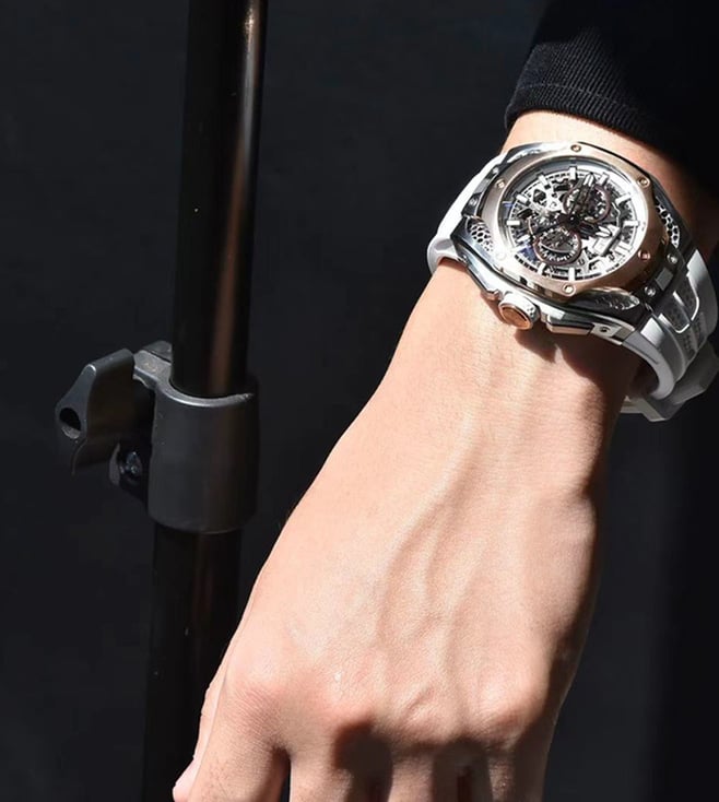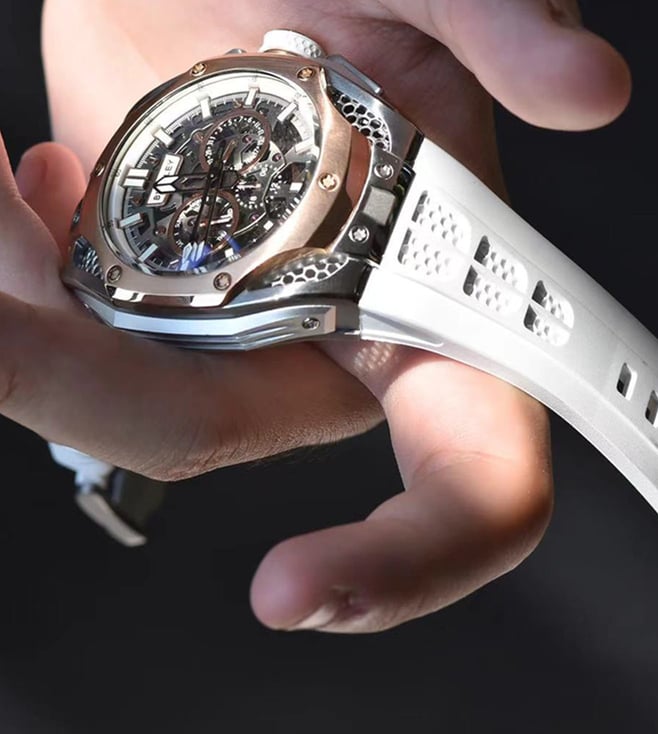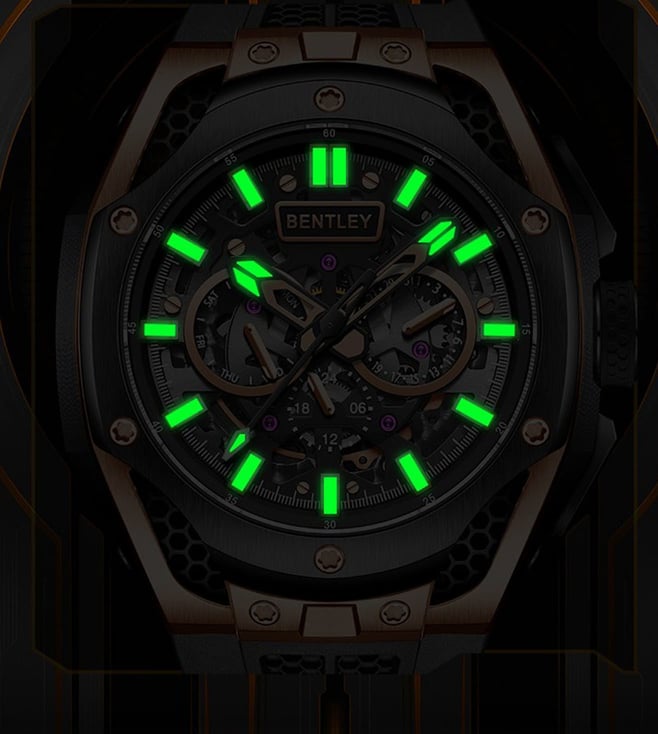 This exquisite Bentley wristwatch is a testament to refined luxury and masterful craftsmanship. At its heart beats the sophisticated automatic BX3613 movement, delivering flawless precision and effortless self winding performance for the modern connoisseur. Its meticulously detailed dial showcases bold subdials that elegantly display the day, date, and 24 hour time, marrying functionality with timeless style. The harmonious blend of polished rose gold and brushed stainless steel in the case creates a captivating contrast, exuding opulence from every angle.