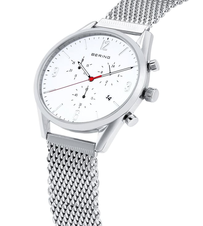 Add the perfect finishing touch to your look with this men's analog watch from the Classic collection by Bering. Its stainless steel bracelet showcases an elegant hue that uplifts the look of the watch. Housed in a 42 mm case, the sleek round dial is protected by scratch-resistant glass. Furthermore, it is complemented with a deployment clasp that ensures a secure fit on the wrist.