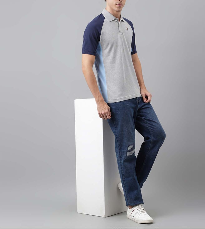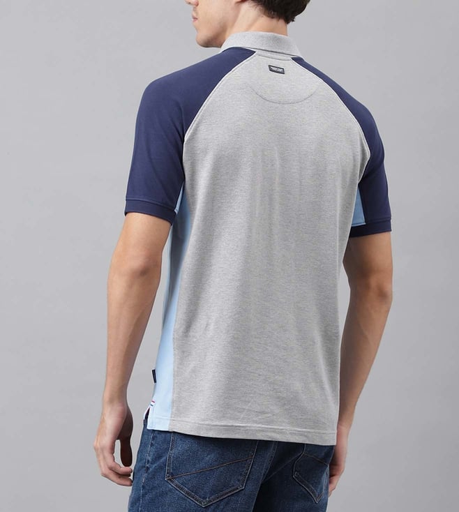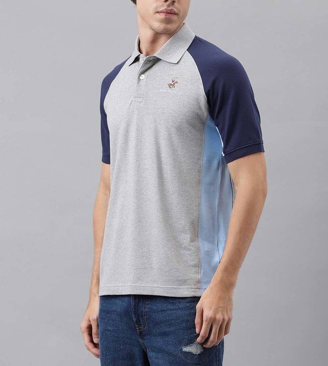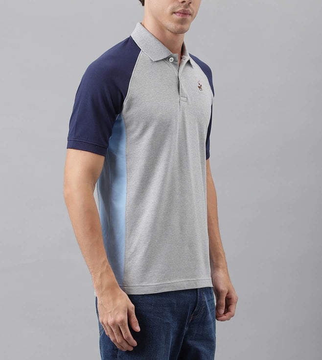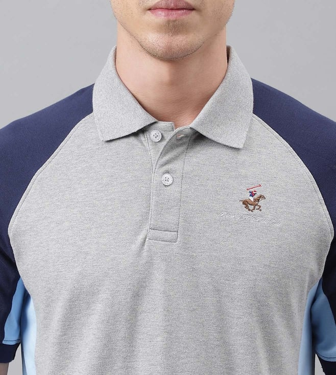 Beverly Hills Polo Club Grey Colour-Block Stretch Pique Skinny Fit Polo T-Shirts