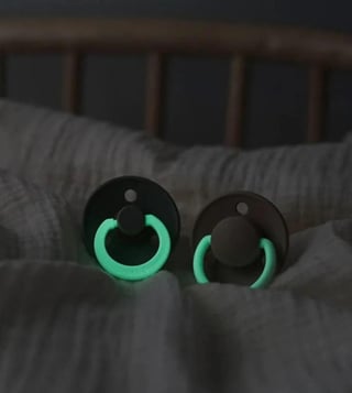 Pacifiers are key for soothing newborns and toddlers, helping them self-soothe and feel secure. The BIBS Pacifier, a trusted choice for over forty years, features a nipple made from soft, natural and durable materials. Designed and made in Denmark, it mimics a mother¿s breast and comes in size 1 (0+ months). It comes with a glow in the dark feature which makes it easy to find the pacifiers in the dark. Simply hold the pacifier up to a lamp for 5-10 sec. to activate the effect. The luminescent effect lasts for 8+ hours.